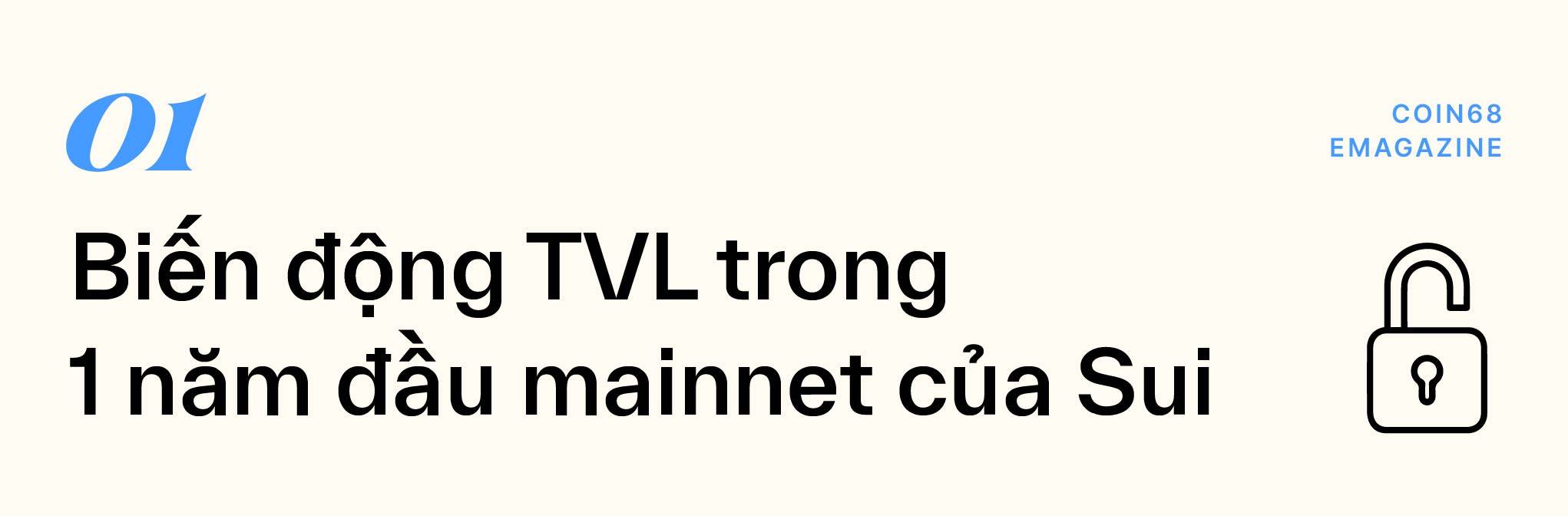 Biến động TVL trong 1 năm đầu mainnet của Sui. Nguồn: DefiLlama