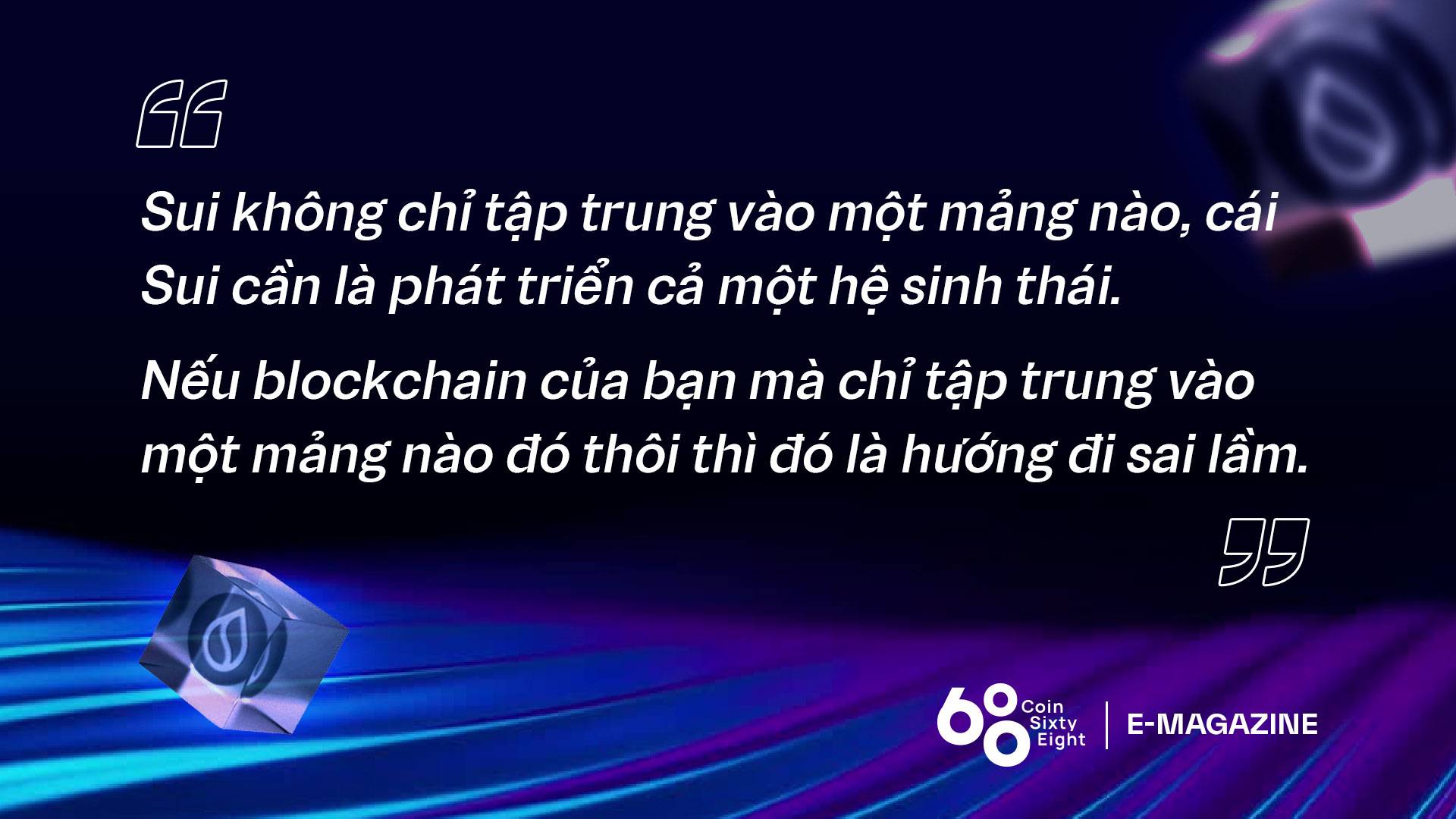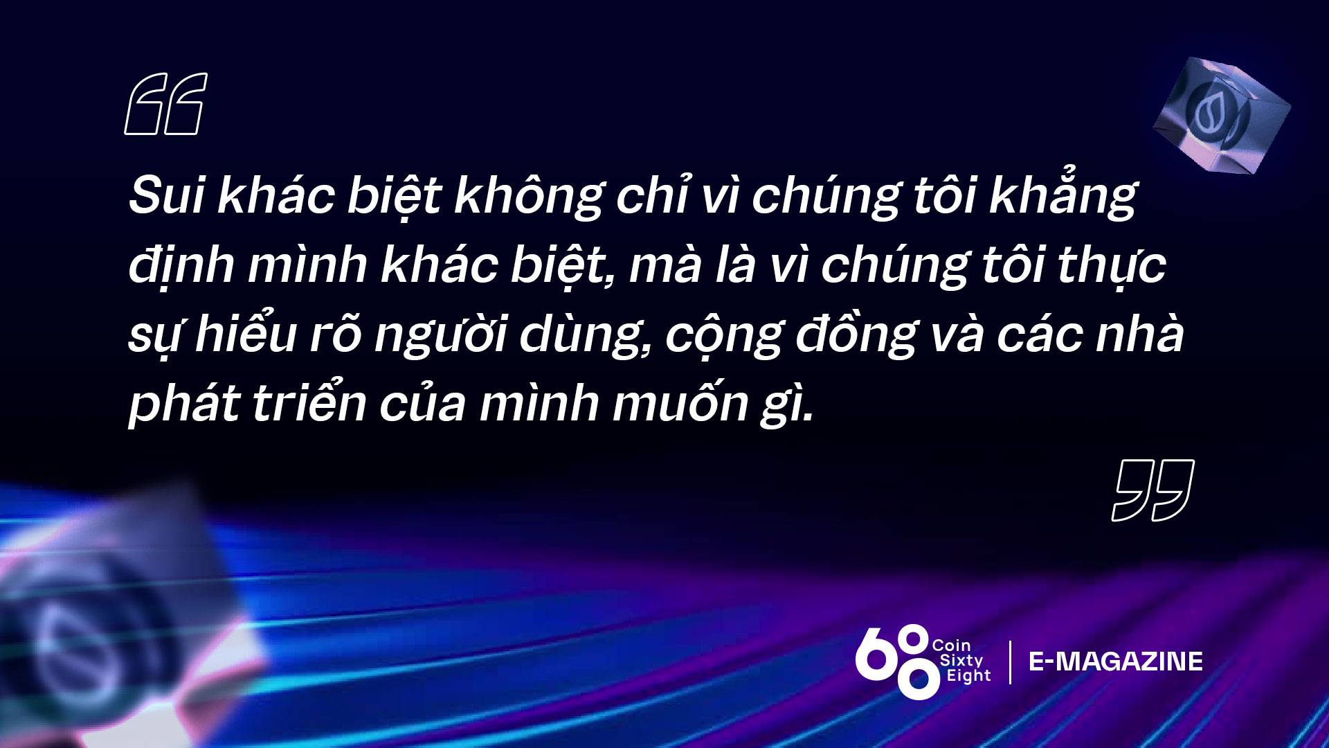Hai đại diện Sui liên tục nhắc đến “nền tảng” và “dài hạn” trong cuộc trò chuyện với Coin68. Vì lẽ đó, Sui chọn những dự án, những nhà phát triển mà mình làm việc cùng bằng một tầm nhìn dài hạn, xây dựng những sản phẩm “dài hơi”, bền vững và chạm đúng nhu cầu của khách hàng.