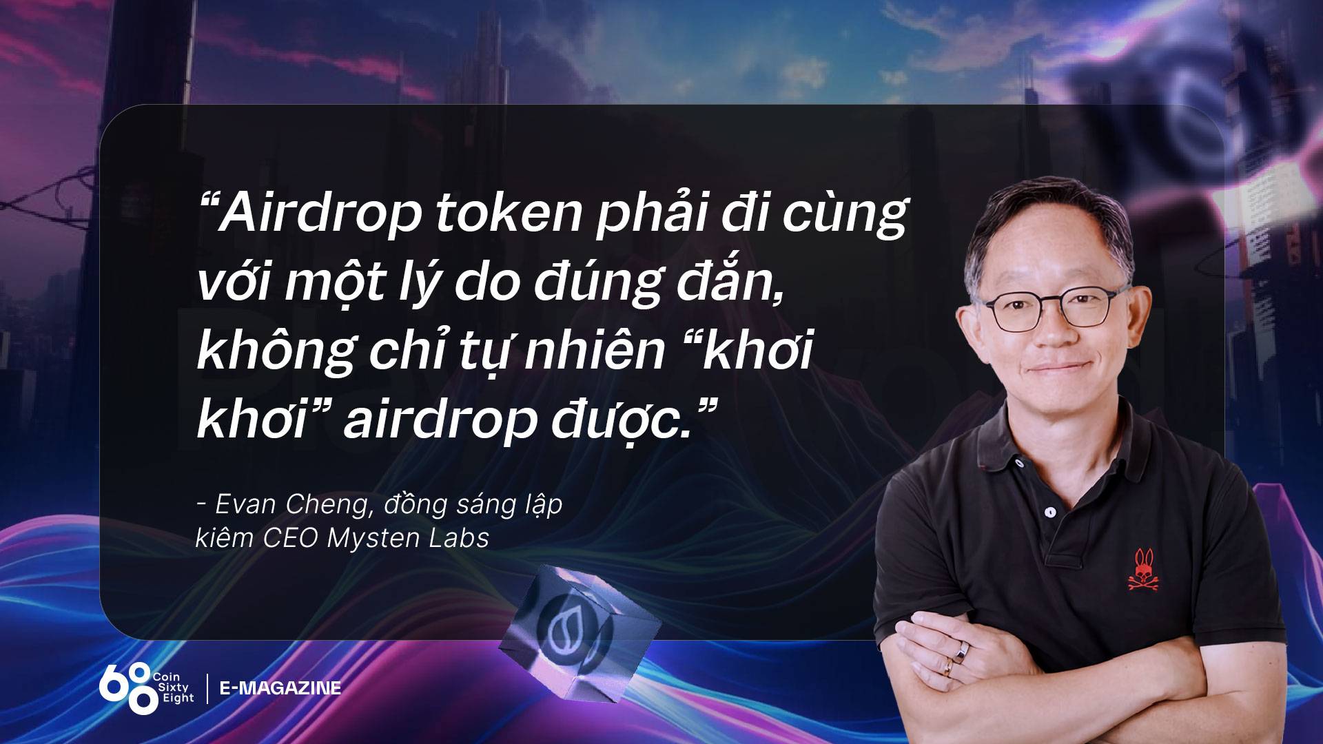 Đồng sáng lập kiêm CEO Mysten Labs là Evan Cheng chia sẻ với Coin68 về lý do không airdrop cho dự án của mình rằng: