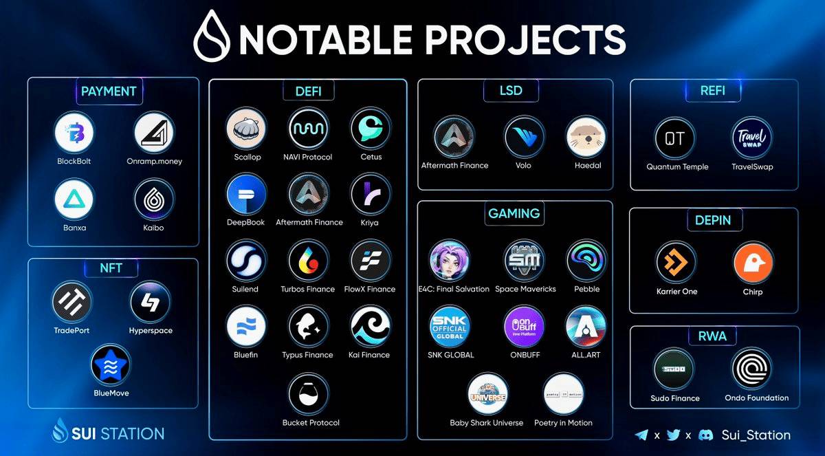 – DeFi: Scallop, NAVI Protocol, Cetus, Suilend, FlowX Finance, Bluefin,…