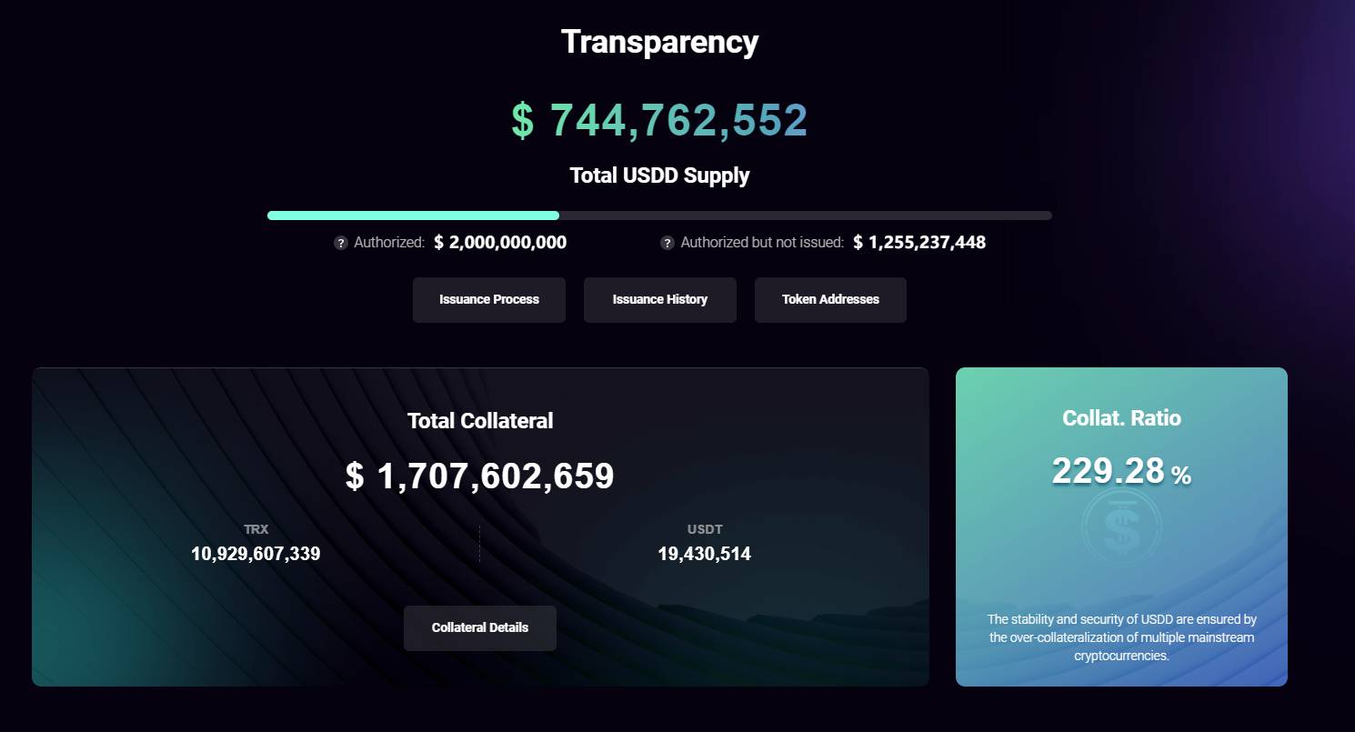 Trở lại với việc bị rút BTC, nhà sáng lập TRON Justin Sun tuyên bố USDD sử dụng cơ chế bảo chứng giống với stablecoin DAI của MakerDAO, cho phép người gửi rút tiền mà không bị hệ thống cản trở nếu lượng tài sản nắm giữ cao hơn tỷ lệ thế chấp quy định. Ông cũng nói thêm là từ trước đến nay, USDD đã luôn duy trì tỷ lệ thế chấp vượt mức 300%, do đó đã không đạt được sự tối ưu về sử dụng vốn. Chính vì vậy, TRON DAO Reserve đang lên kế hoạch để nâng cấp USDD trong tương lai.